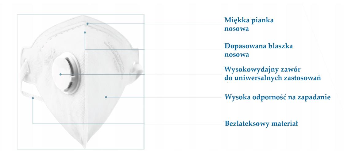 - wyposażona w zacisk nosowy ułatwiający dopasowanie się do kształtu twarzy