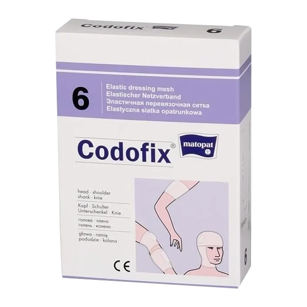 Elastyczna siatka opatrunkowa posiadająca szerokie zastosowanie m.in. jako zamiennik tradycyjnych bandaży do podtrzymywania opatrunków na ciele. Szczególnie polecana do trudnych w opatrywaniu części ciała takich jak głowa, klatka piersiowa, miednica czy krocze. Siatki opatrunkowe Codofix uzyskały pozytywną opinię z badań dermatologicznych, które wykazały, że nie wykazują one własności drażniących lub uczulających.